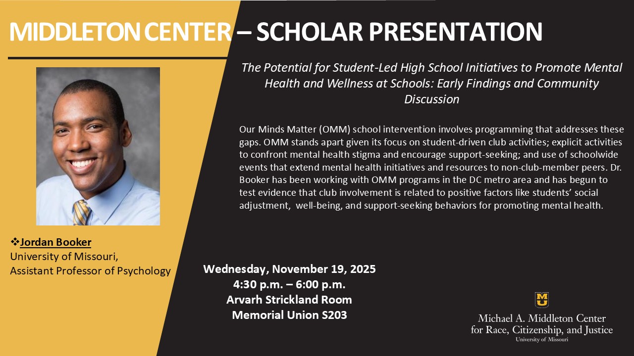 Dr. Booker has been working with OMM programs in the DC metro area and has begun to test evidence that club involvement is related to positive factors like students' social adjustment, well-being, and support-seeking behaviors for promoting mental health.